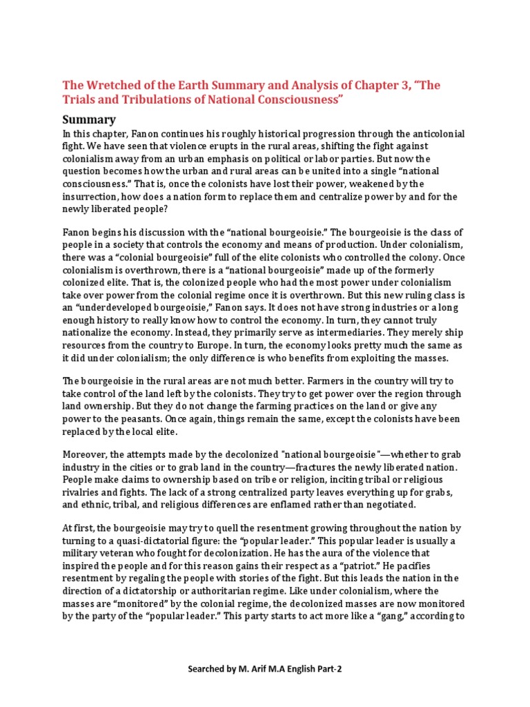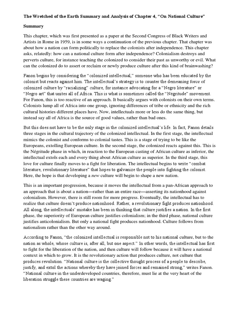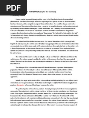 The Wretched Of The Earth Summary And Analysis Of Chapter 3 Docx Frantz Fanon Colonialism