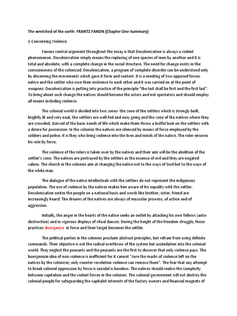 The Wretched Of The Earth Summary Docx The Wretched Of The Earth Summary The Wretched Of The Earth Is Frantz Fanon U2019s Seminal Discussion Of Course Hero