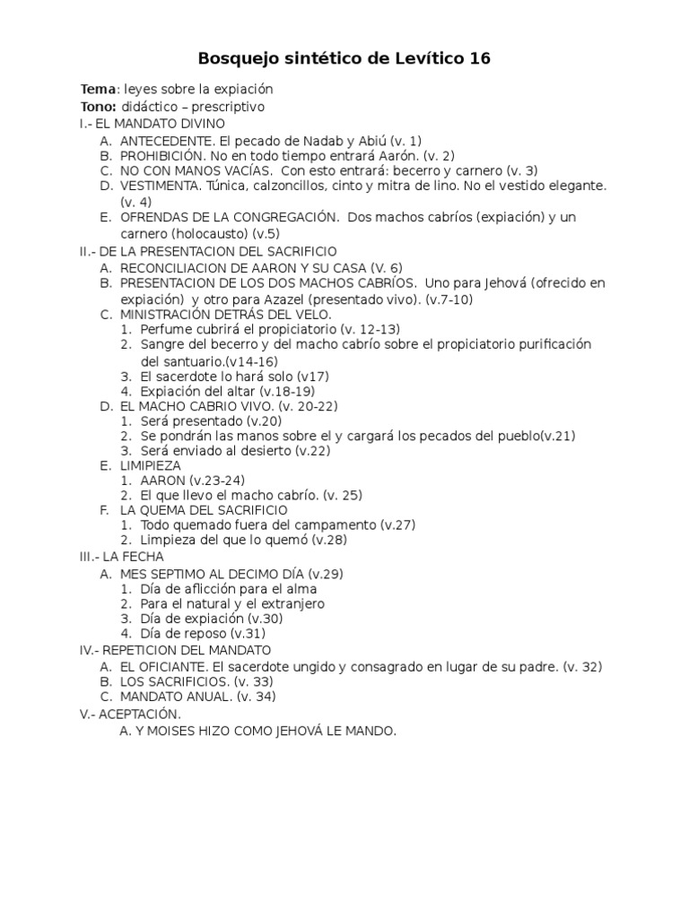 Bosquejo Sintético de Levítico 16